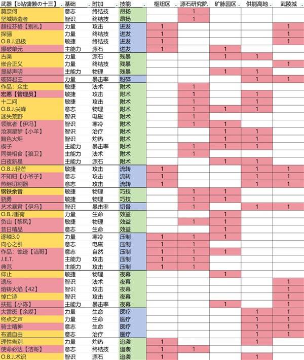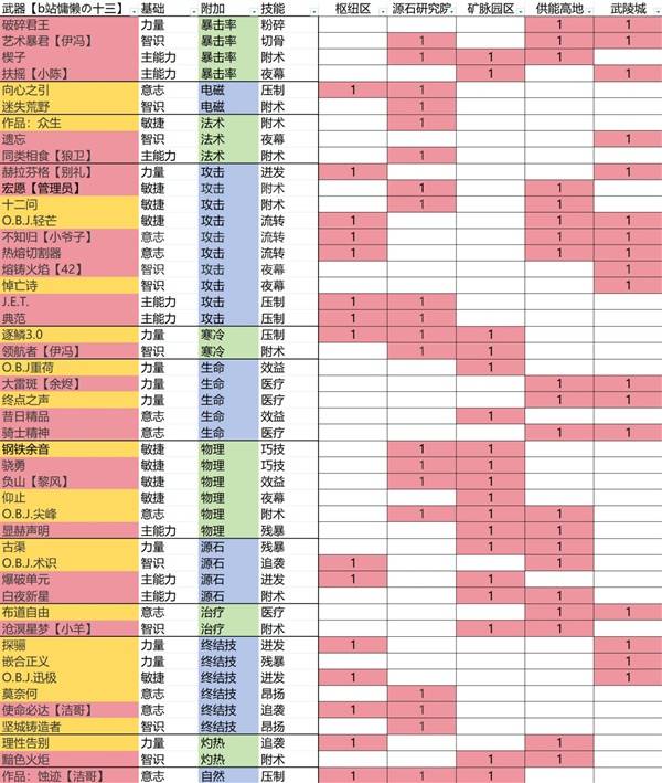 各武器基质刷取建议图表
