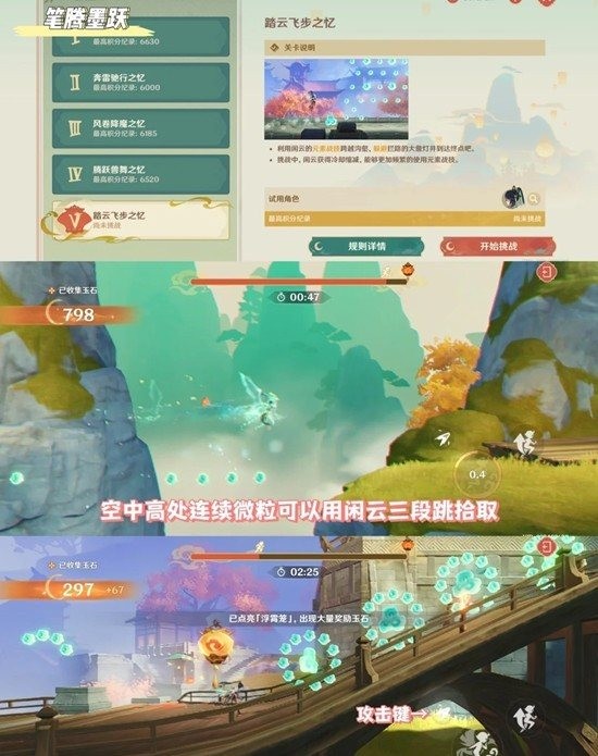 1、空中高处连续微粒可以用闲云三段跳拾取。