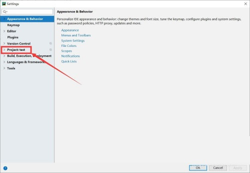 2、在设置对话框中,选择【project】,点击进入。