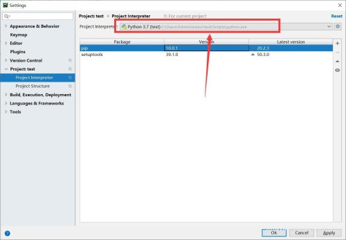 5、再回到设置中心,就可以看到project interpreter已经变成了Python 3.7,表示设置成功。