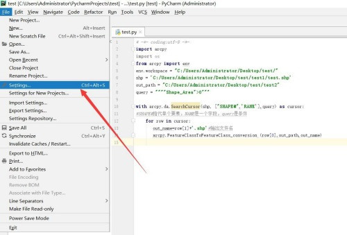 1、在电脑上打开pycharm软件,依次点击菜单栏【file】-【settings】,进入设置中心。