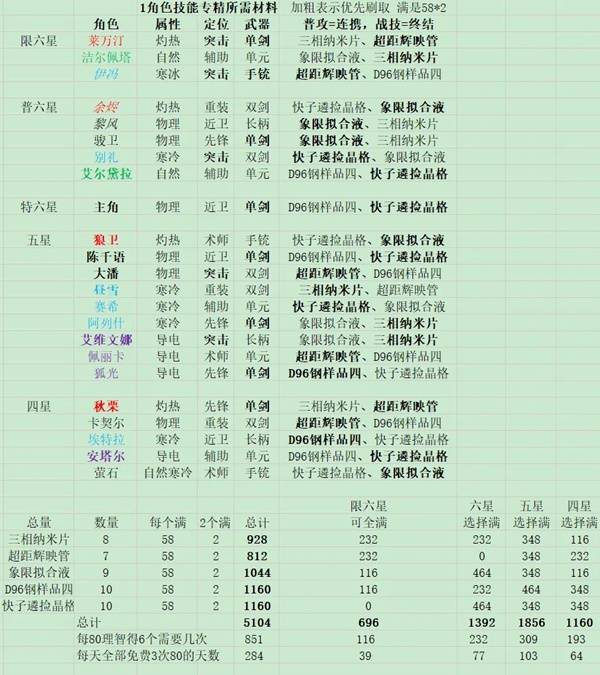 全角色培养方向图表一览