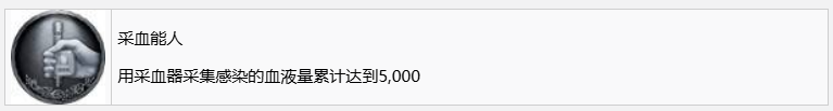 1、此奖杯为累计杯,可通过存读档快速刷取。首先需要扮演格蕾丝,在【疗养院-血液研究室】拾取关键道具【采血器】。然后在游玩过程中收集分散在地图各个区域的输血袋(疗养院就有很多,例如获得人造心脏的冷库区域),方便之后通过合成物品消耗采血器的血液量(如合成弹药、溶血注射器等)。