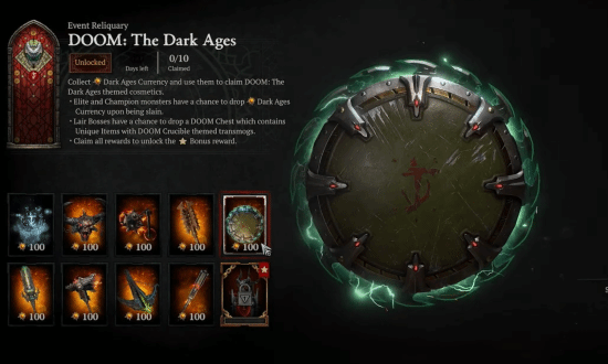 同样从3月12日起,《暗黑破坏神4》将与FPS大作《毁灭战士:黑暗时代》展开联动。玩家可通过免费的圣骨箱获取“盾牌勇士”“讨伐者的链锤”皮肤,以及背部勋章“恶魔机甲头盔”,联动道具也将在游戏内商店同步发售。