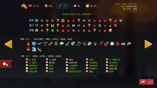 这张超神卡,拿了基本就稳,配套剑柄打击过牌,卡组里就两张剑柄就可以无限了,缺点就是无实体的鱼和最终三头蜥蜴boss会刮一宿,好在是全自动也无伤大雅