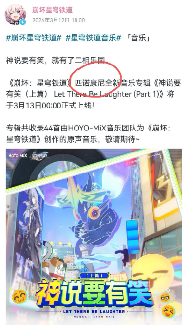 《崩坏星穹铁道》在2026年3月13日(今日)将二相乐园主题OST《神说要有笑(上篇)》正式上架各大音乐平台!这张由HOYO-MiX音乐团队倾力打造的全新专辑,共收录44首原声音乐,为玩家们带来一场听觉上的狂欢盛宴。