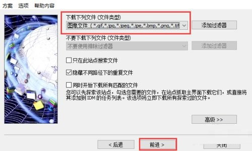 6、选择下载的文件类型为图像文件,然后点击前进。