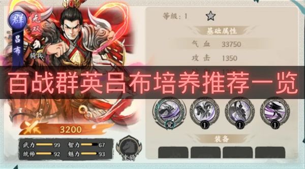 在《百战群英》中,三国里第一猛将吕布是一名比较强力的武将,许多玩家都不了解吕布要如何搭配才比较好,下面彩旗小编会整理百战群英吕布培养推荐一览的资讯,想要培养吕布的玩家可以来参考一下吧。
