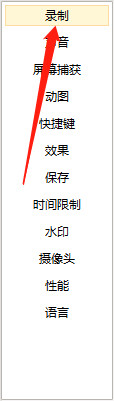 3、点击新界面左侧菜单栏中的"录制"选项。