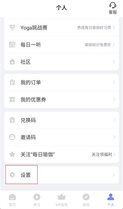 1、打开每日瑜伽,进入软件后点击界面右下角【个人】。