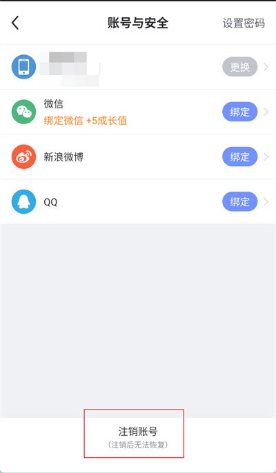 4、在账号与安全界面的位置,点击最下方【注销账号】选项即可。