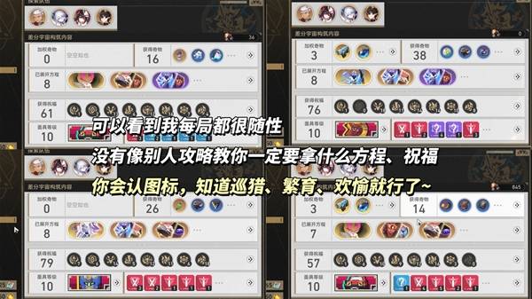 ※倘若运气不好,没有1个符合的方程,那就先随便选一个,等待后续出现“造物调试台”重新刷一下方程,一般出现在首领关卡。期间不要按系统提示,去选取方程所选命途祝福,依旧以巡猎、繁育优先,无方程也能打一定伤害。