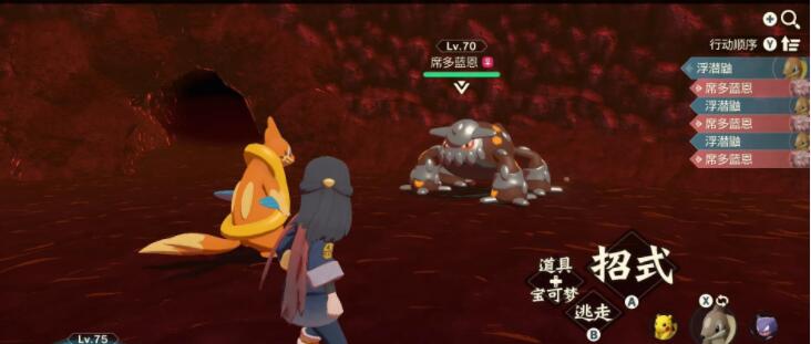 2、进入后会看到被火焰保护的宝可梦席多蓝恩,不可以直接作战。